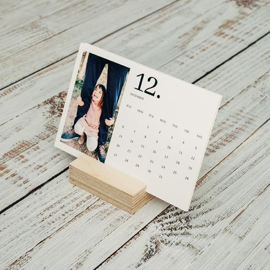 Este é um calendário original que além de funcional, irá decorar qualquer secretária. O conjunto de folhas, uma para cada mês, podem ser personalizadas com diferentes fotografias. Com vários formatos disponíveis, as folhas são fixadas num elegante bloco de madeira clara.