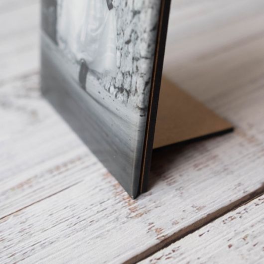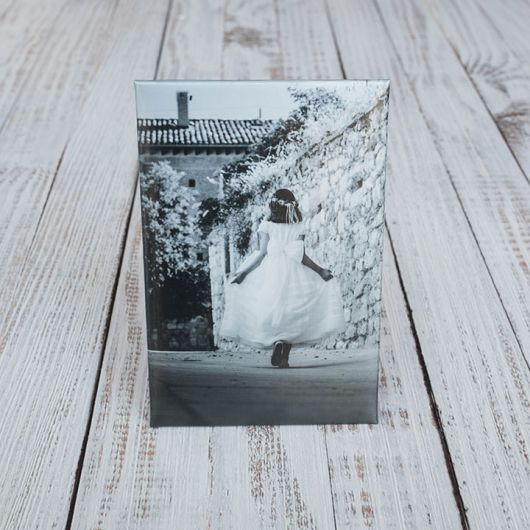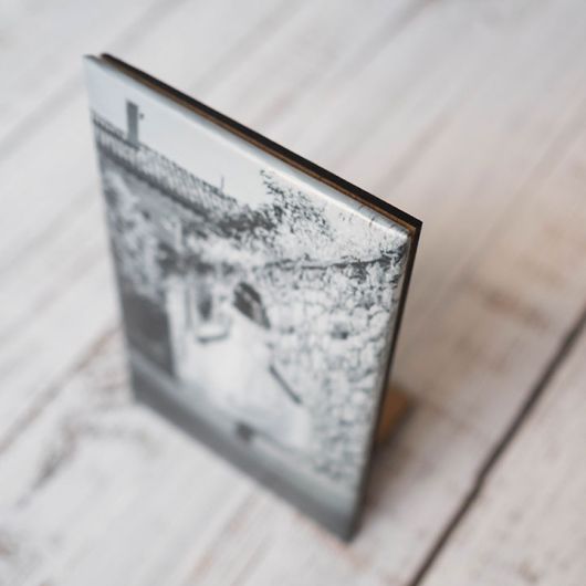 A Capa Foto prima pela simplicidade, elegância e discrição. A imagem é impressa em papel fotográfico matte, com acabamento fosco (sem brilho) de alta qualidade e resistência. O suporte da fotografia possui um relevo ligeiramente almofadado e é fixado sobre uma rígida estrutura de madeira.