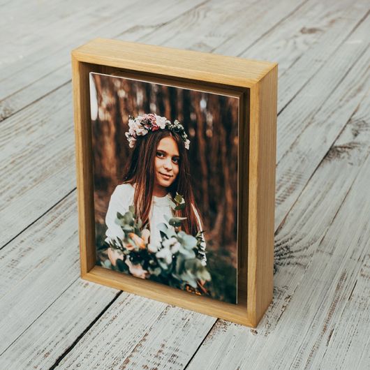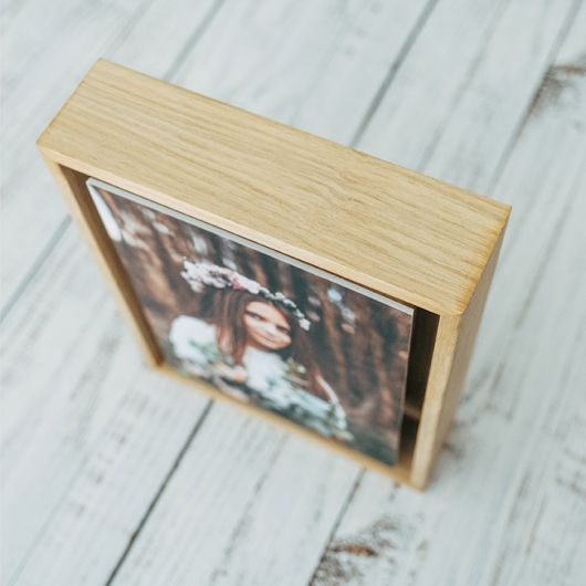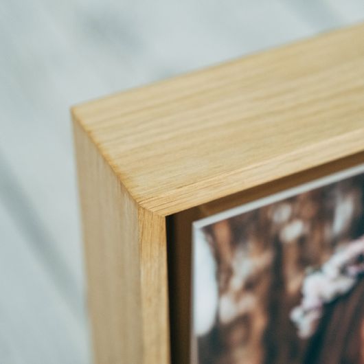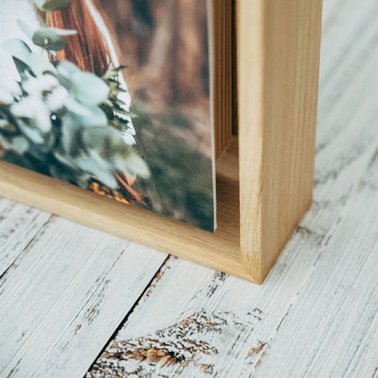 Simples e elegante, a distância entre a moldura e a imagem confere a capacidade de projetar o momento através do espaço. A fotografia é impressa em UV no PVC e pode escolher entre branco, preto ou madeira natural para o aro..