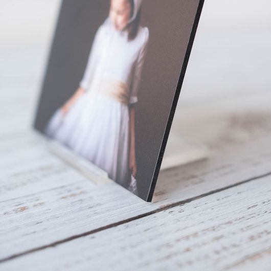 O Dibond é um material de alta resistência à flexão e à corrosão atmosférica e é composto de alumínio relativamente leve o que o torna numa ótima superfície para impressão. O alumínio realça as imagens proporcionando cores mais vibrantes e de nítida resolução. A imagem impressa num Dibond com espessura de 3mm é suportada por uma leve placa em Acrílico com 7cm de largura.