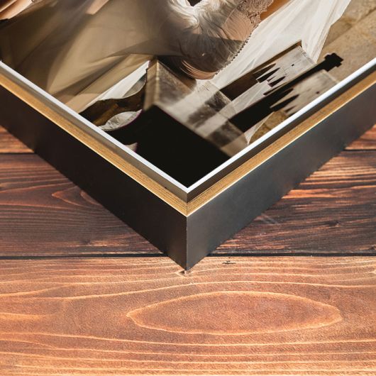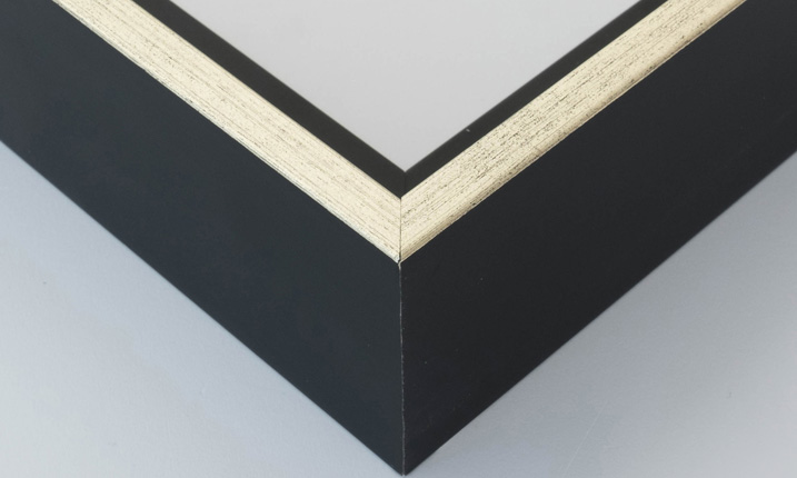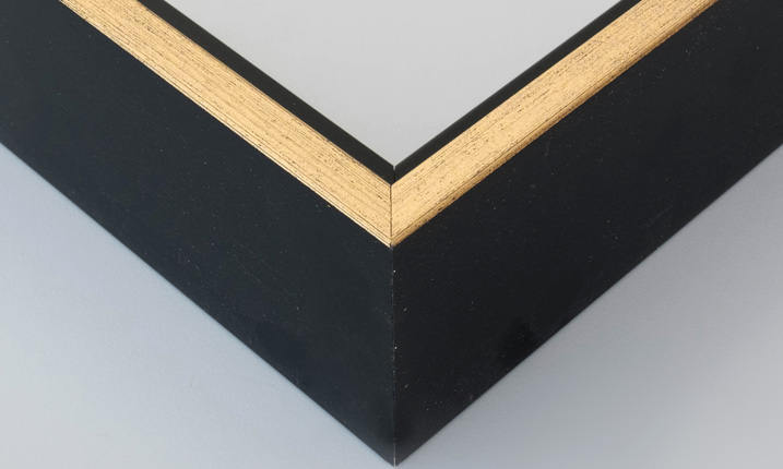 Moldura disponível em preto, preto e prata, preto e ouro, branco, wengué e carvalho.