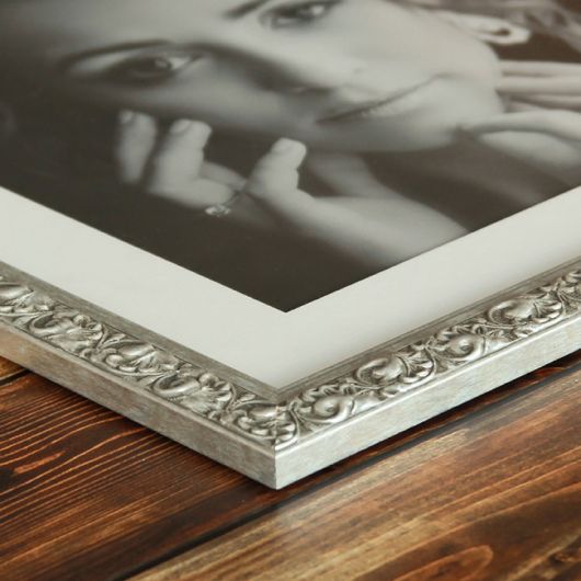 Disponível em tons de prata ou ouro, a moldura Vintage impressiona pelos seus detalhes e pelo efeito provocado quando colocada na parede.